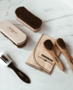 - Si tus sandalias son de ante o nobuk, puedes eliminar el polvo de su superficie con el Tarrago De Luxe Brush o Tarrago Brass Metal Brush