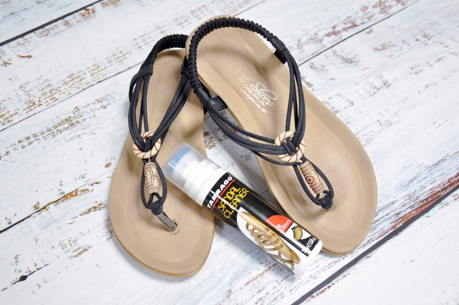 - Aplicar el producto uniformemente sobre toda la sandalia, presionando suavemente la esponja sobre la superficie.